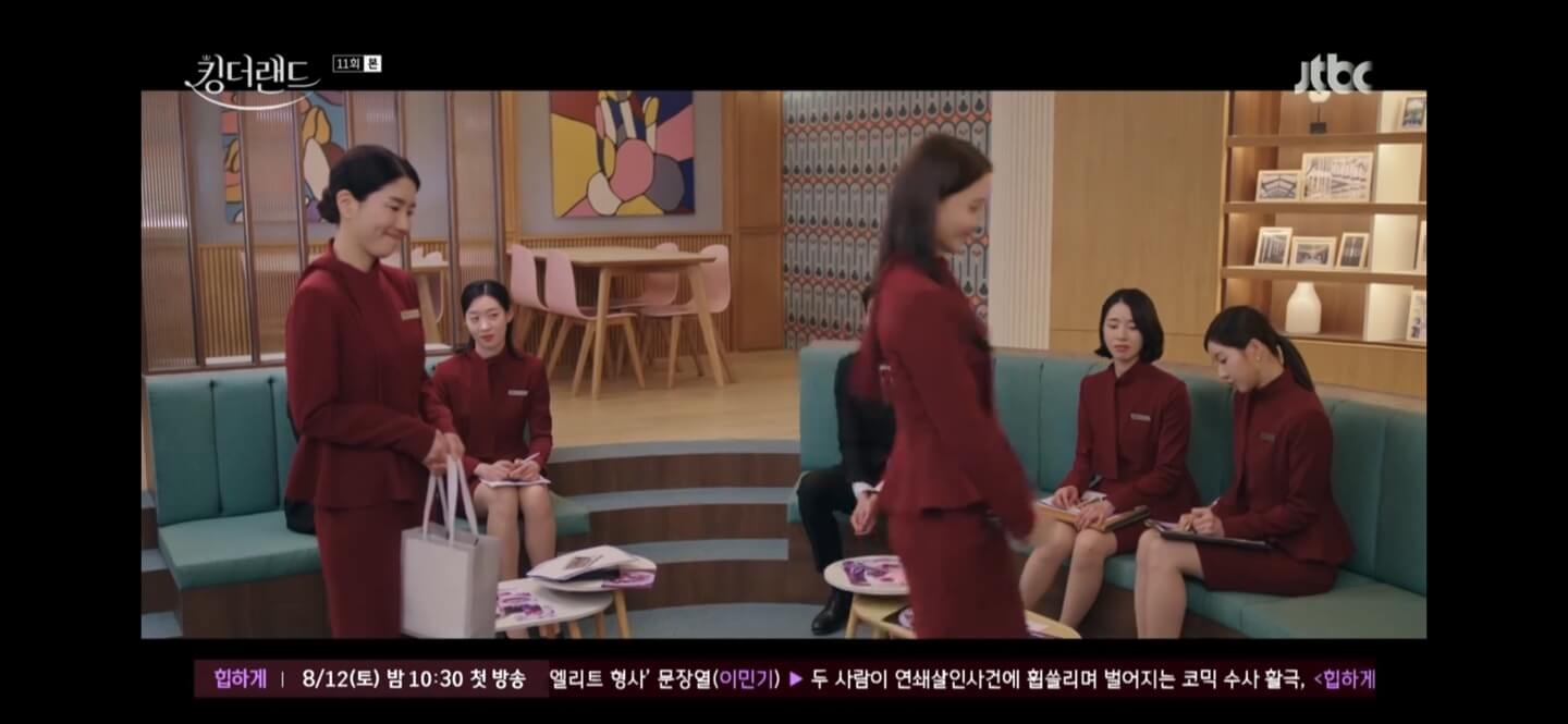 지난 주말에는 태국 여행을 다녀온 사랑이. 킹더랜드 지배인님에게 입욕제 선물을 하는데 대놓고 선배들이 지배인님한테 잘보이려고 꼬리친다는 식으로 씹기 시작합니다. 하지만 역시 사회생활 좀 해본 사랑이는 다른 선배들 선물까지 다 챙겨오죠. 역시 여행 선물은 팀 전체를 챙겨야 한다는 걸 드라마를 통해 다시 한 번 느낍니다.