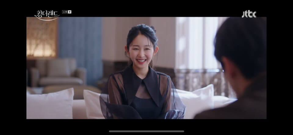 그리고 다음날 킹더랜드에서 사랑이를 만나러 왔는데, 구원의 약혼녀가 바로 찾아옵니다. 그리고 킹더랜드 가지고 싶으면 자기랑 결혼하는 게 좋을 거라는 약혼녀. 구원은 노상관! 커피 잘 마시고 잘 가라 보내줍니다.