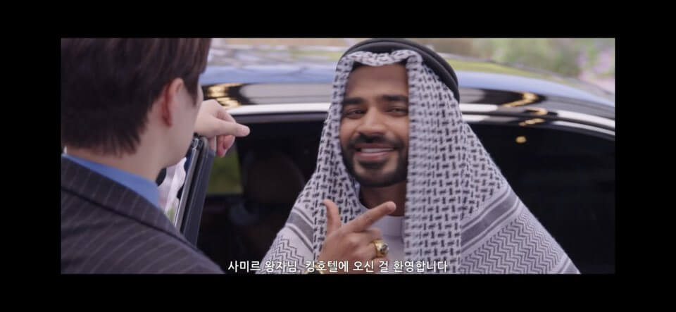 유학 시절 둘은 친구였는데 서로를 못마땅하게 여긴 모양입니다. 구원은 모든 조건을 받아들이는 조건으로 아랍왕자 친구를 킹호텔로 부를 수 있었어요. 다만 전제조건이 거의 노예계약 수준이었는데요. 첫 등장부터 구원이 운전해주고, 직접 문까지 열어주고 온갖 수발을 드는 장면이 나와요.